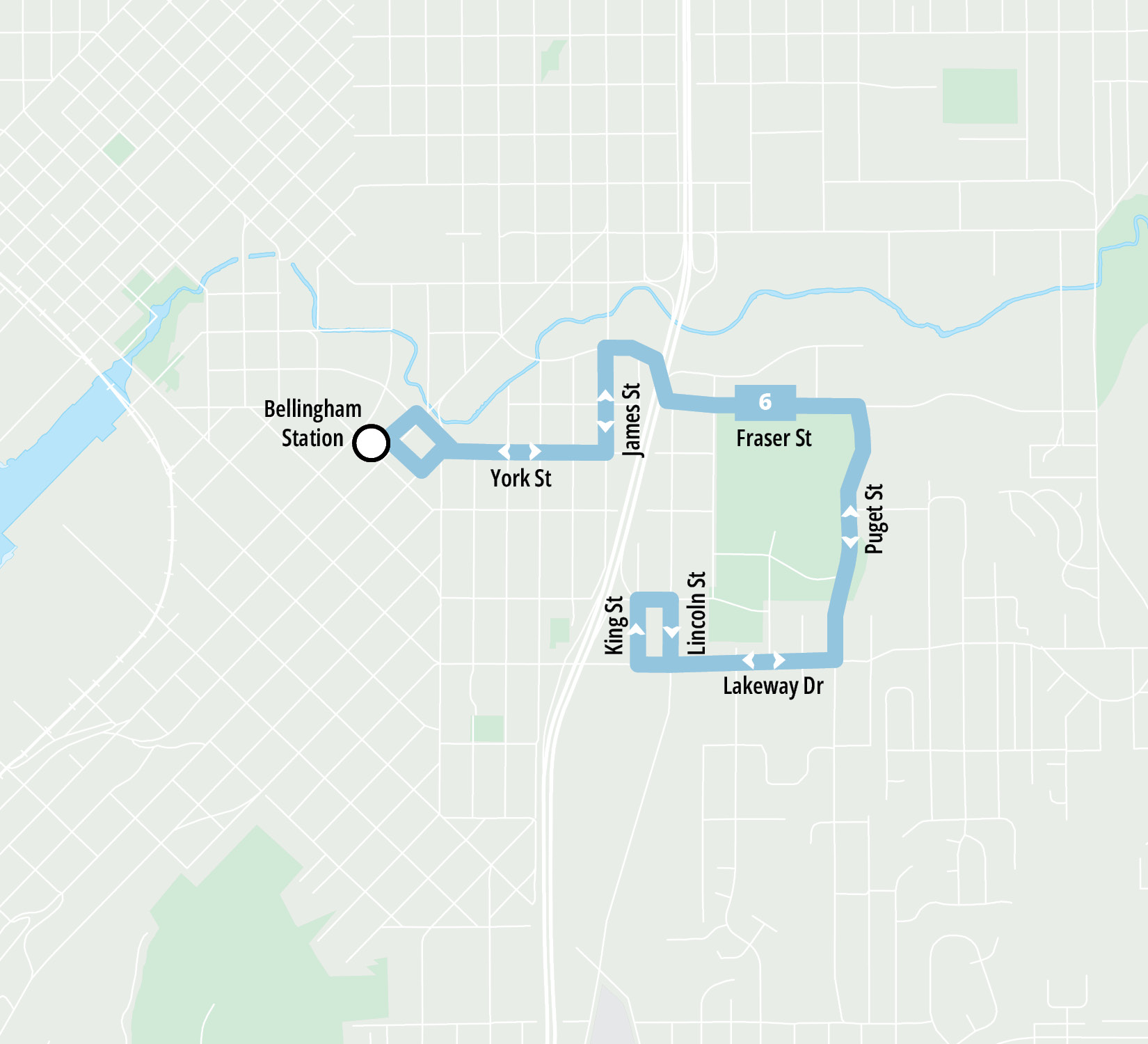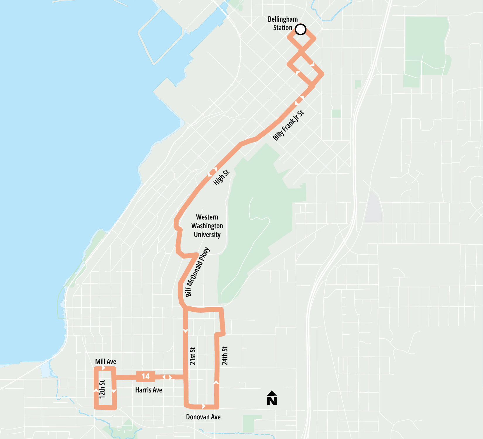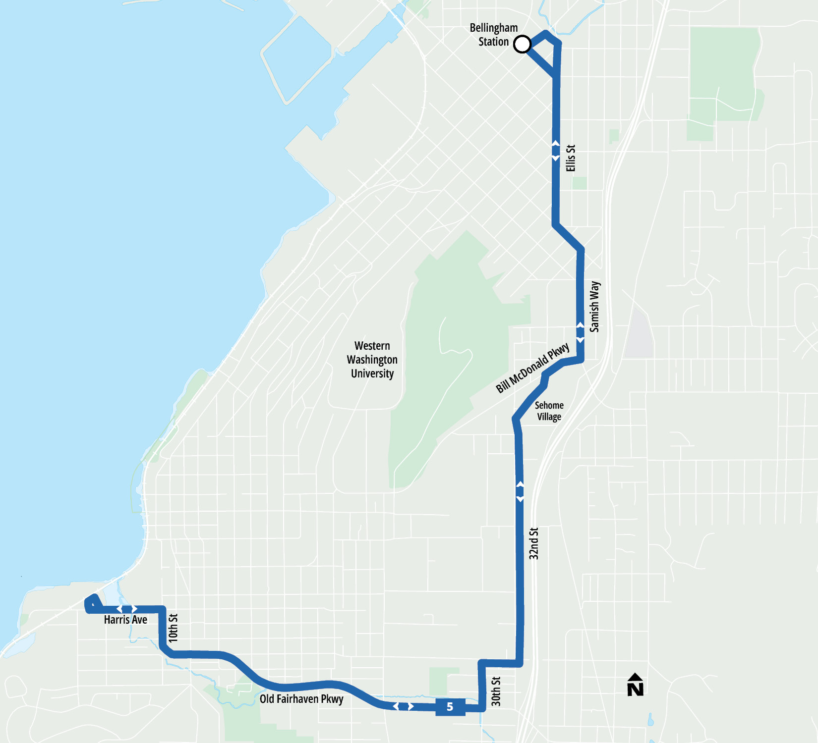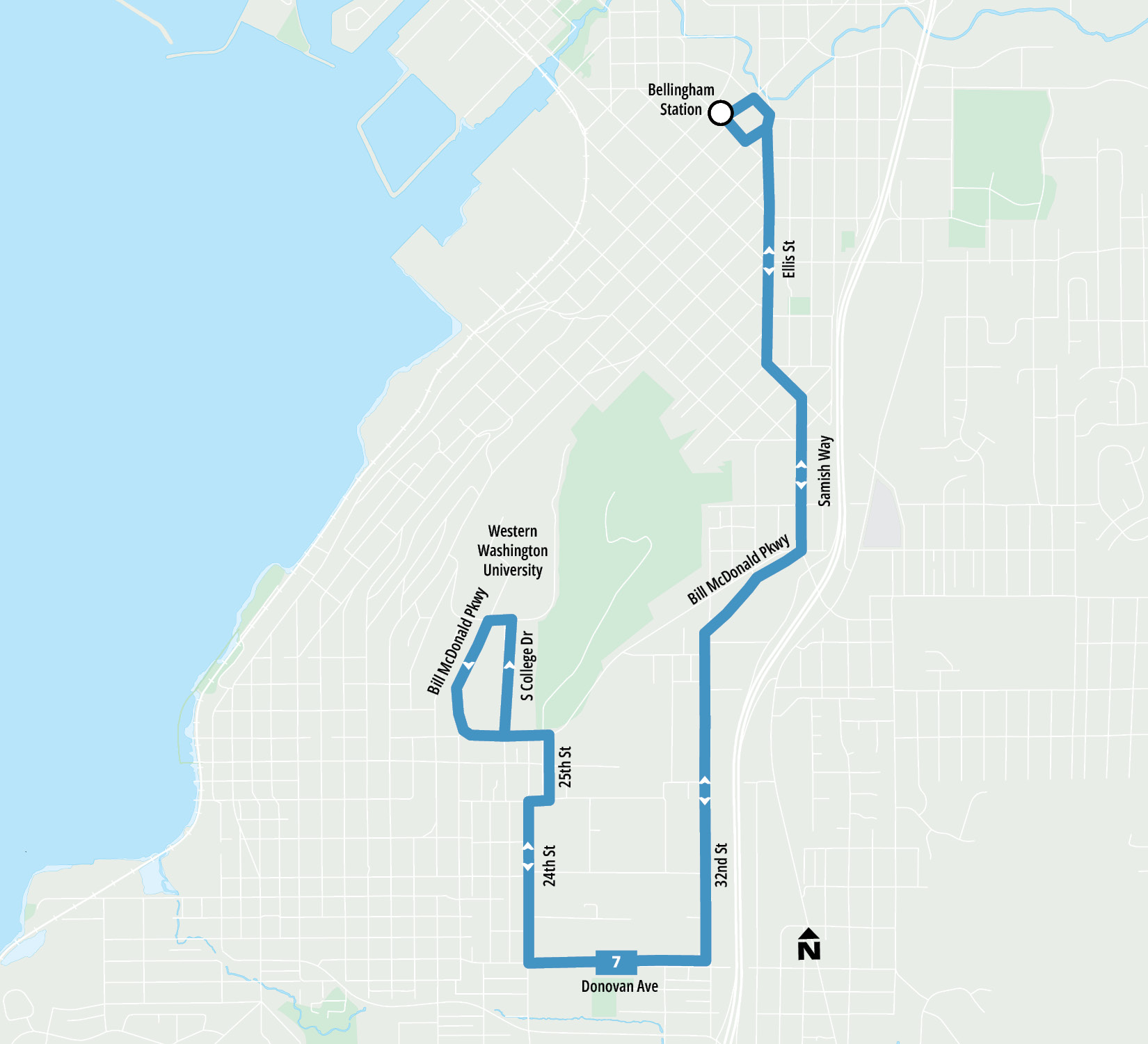 - 3 transfer points (Bill McDonald at Samish, Bill McDonald at Rec Center, and Downtown Station)